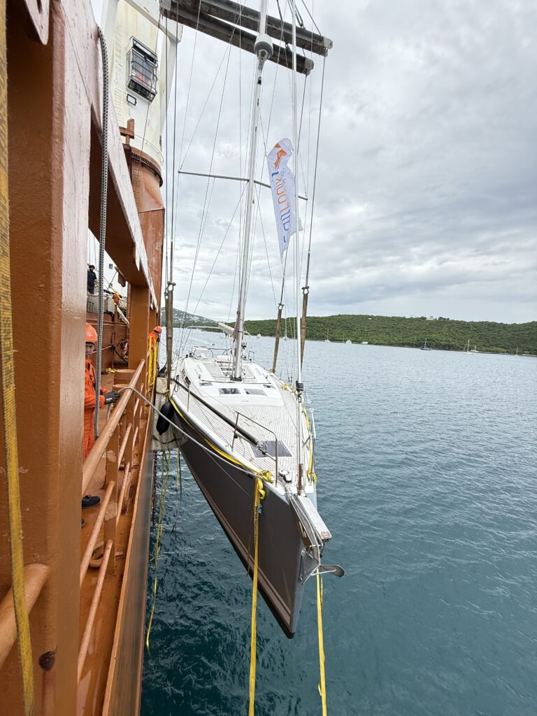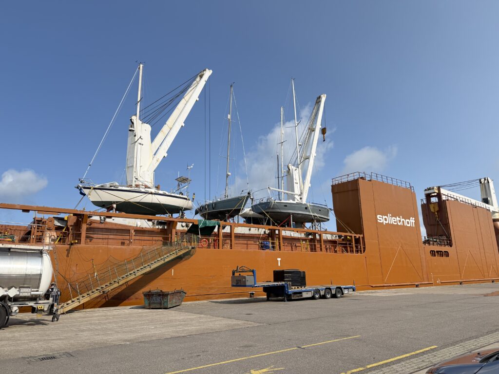 Voor het vervoer aan boord van een Lijndienst (container) schip geldt dat voor zeilschepen de mast eraf gehaald dient te worden en op bestemming er weer op geplaatst moet worden. (Op- en Afmasten)